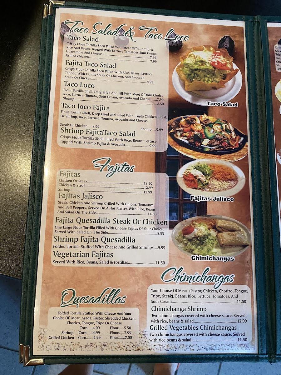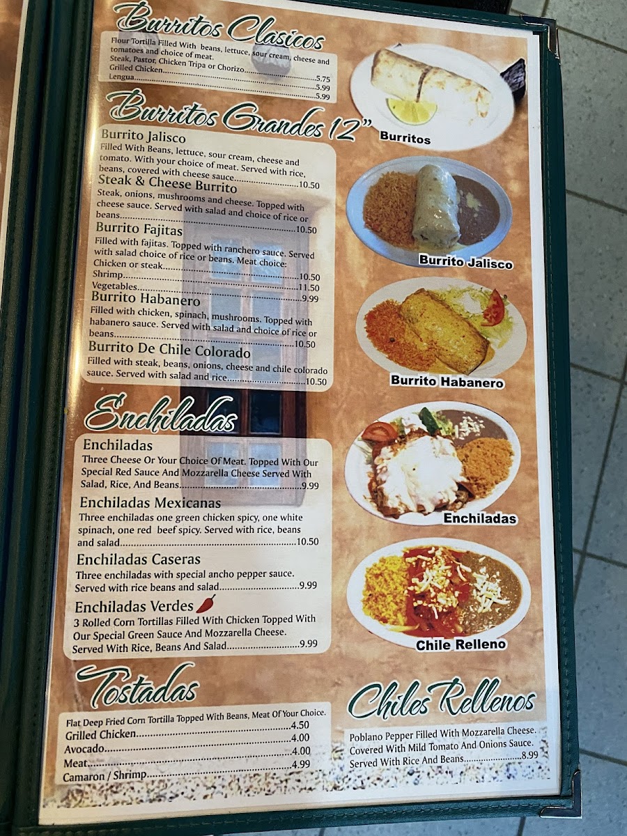 Tacos Jalisco Mexican Restaurant & Taqueria Menu